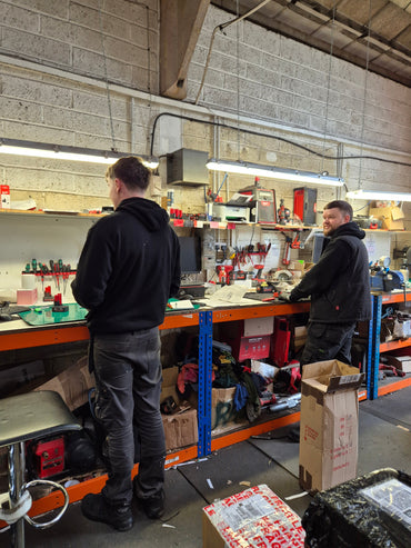 Our workshop technician's Daniel workshop manager, Matthew and Shane all servicing, inspecting and repairing the different machines that we receive.